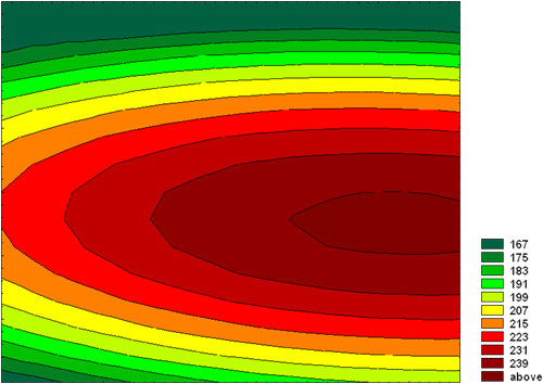 Поверхность, построенная по значениям контрастности. Изолинии через 8 единиц