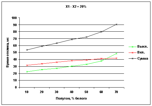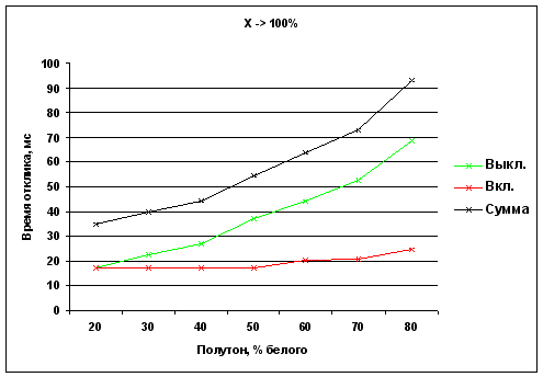 Времена отклика при переходе от полутона X до белого