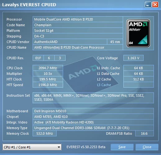 К нам ноутбук поступил с двухъядерным процессором, принадлежащим к текущему семейству мобильных процессоров AMD, в котором также имеются 3- и 4-ядерные модели, и они могут быть установлены в качестве вариантов комплектации.