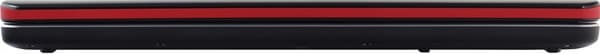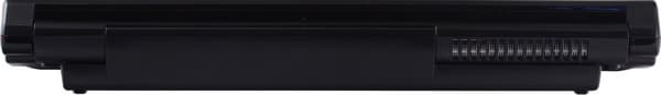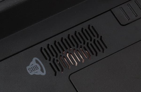 Нижняя крышка из простенькой черной шершавой пластмассы. Впрочем, в настольной модели это вполне оправданное решение, вряд ли кто-то увидит ее дно. Также стоит отметить, что батарея сильно выдается из корпуса вниз, больше чем на сантиметр. Из-за этого, во-первых, между ноутбуком и поверхностью, на которой он стоит, образуется большой зазор, в котором циркулирует воздух, а во-вторых, создается пространство, в котором работает «сабвуфер ноутбука».