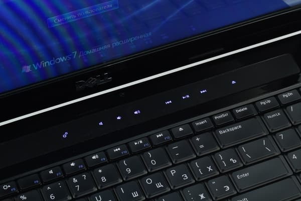 У Dell Studio 1747 есть дополнительная секция мультимедийных клавиш. Клавиши сенсорные, при работе они всегда подсвечиваются белым светом. Уровень яркости подсветки, на мой взгляд, хороший, она не слишком режет глаза. Кнопки находятся на специальной матовой вставке, на которой не видно отпечатков пальцев, поэтому ноутбук не будет иметь заляпанного вида.