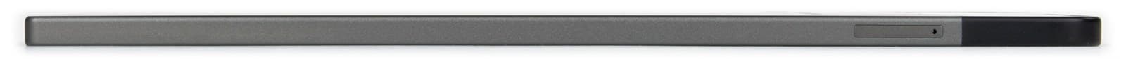 Внизу размещена остальная пара разъемов — Micro-USB и «миниджек». Ребро планшета расположено строго под прямым углом к фронтальной и тыльной панели, так что разъем для наушников полностью на ней умещается.
