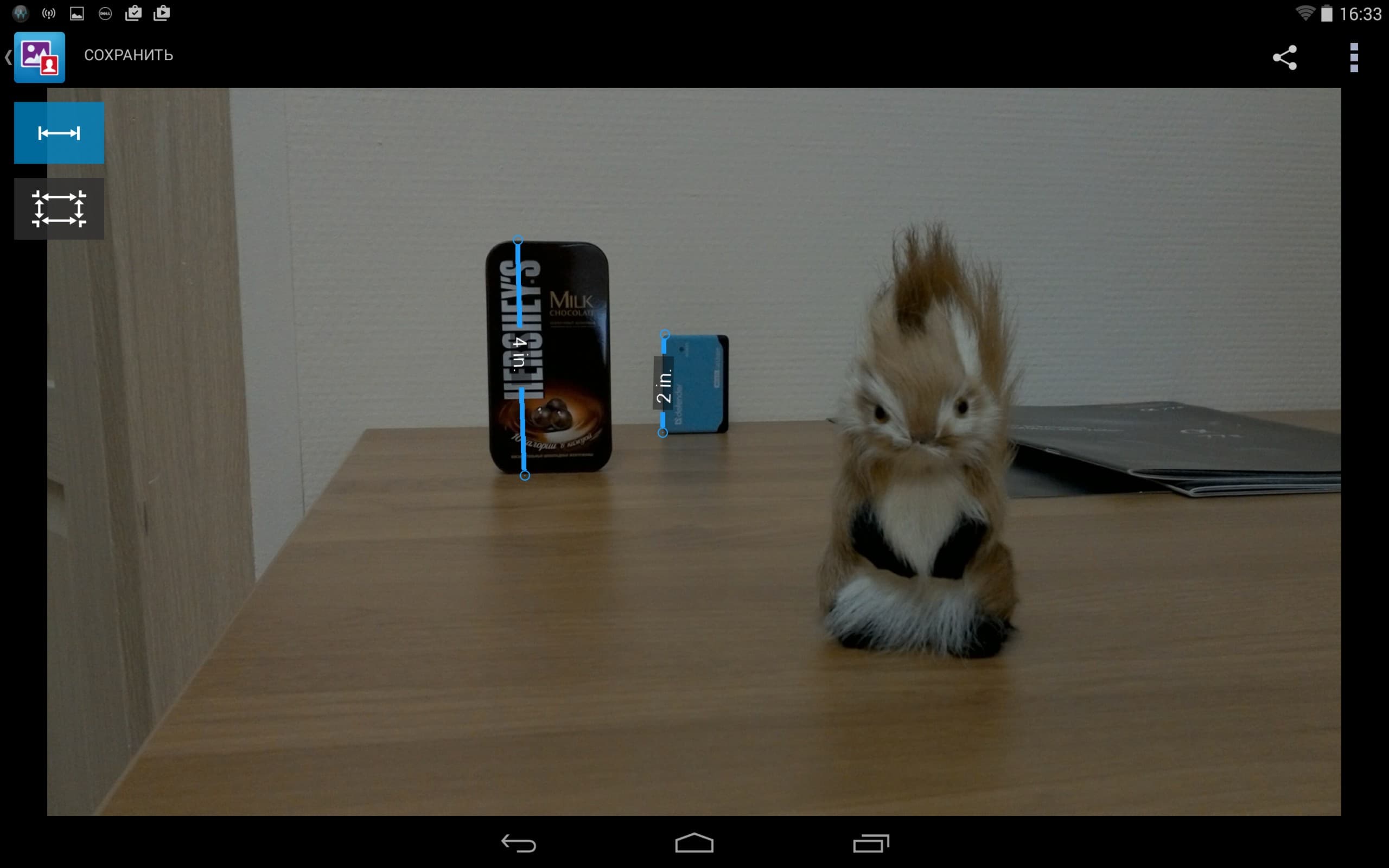 Помимо имитации малой глубины резкости, камера умеет и кое-что действительно полезное. За счет дальномера, в роли которого, судя по всему, и выступают две лишних камеры, можно определять линейные размеры объектов. Ниже приведены несколько примеров измерения.