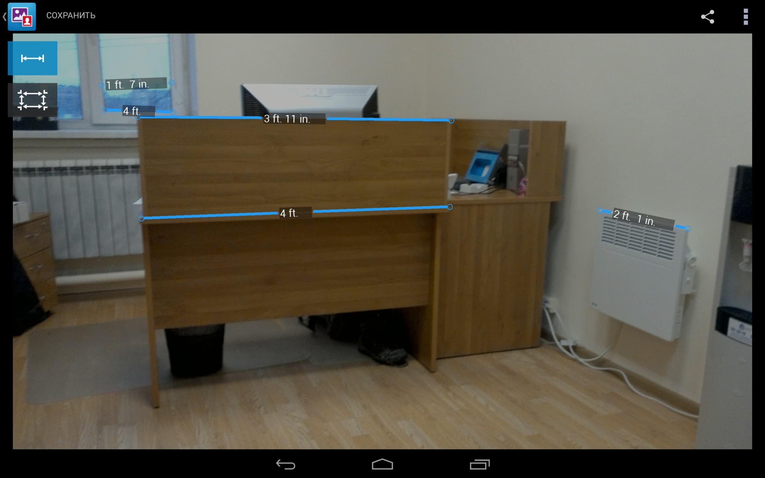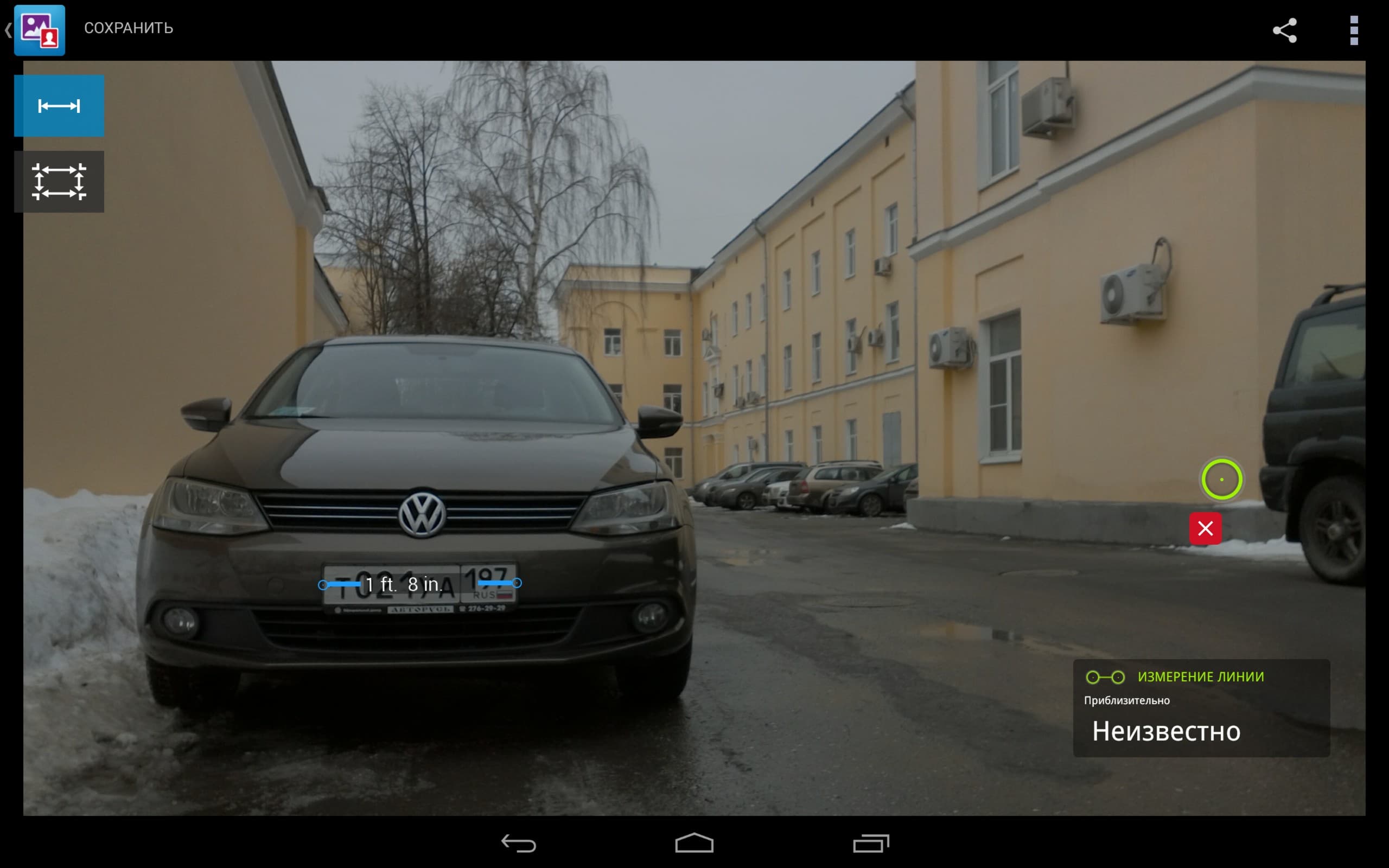 Можно отметить, что в целом программа справляется неплохо. Большие ошибки измерения соответствуют плохому освещению предмета или его слабому контрасту. Ошибки поменьше, но более 10% соответствуют маленьким и близким предметам, о чем нас также предупреждало руководство. В остальном же погрешность измерения достаточно мала, хотя во всех вышеприведенных случаях рулетка окажется гораздо точнее. А вот с измерением больших и сложных объектов, вроде машин и невысоких зданий, данная программа действительно может помочь. К тому же, можно сделать оценку линейных размеров удаленного или труднодоступного объекта.