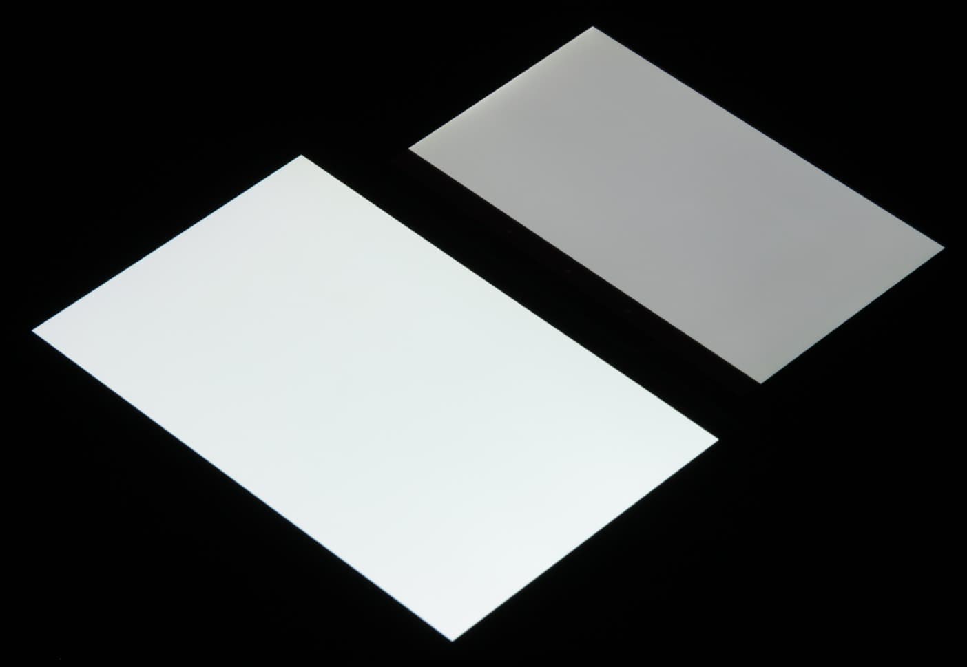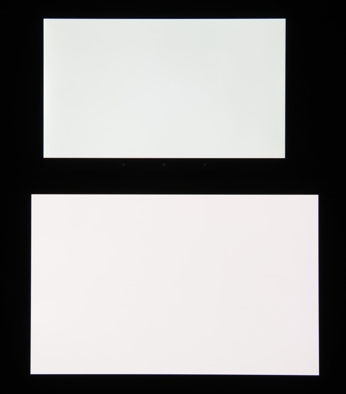 Экран характеризуется великолепными углами обзора, правда белый цвет при отклонении на большие углы приобретает то легкий сине-зеленый, то розоватый оттенок, но черный цвет — просто черный под любыми углами (если в экране ничего не отражается). Настолько черный, что параметр контрастности в данном случае просто неприменим. При перпендикулярном взгляде равномерность белого поля отличная. Для сравнения приведем фотографии, на которых на экраны Dell Venue 8 7840 и второго участника сравнения выведены одинаковые изображения, при этом яркость экранов изначально установлена примерно на 200 кд/м², а цветовой баланс на фотоаппарате принудительно переключен на 6500 К.