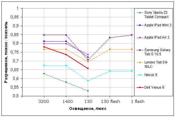 Лабораторный тест лишний раз показывает, что ведет себя камера не очень хорошо, но в целом держится почти на уровне флагманских планшетов. Пожалуй, для нетребовательной документальной и художественной съемки она подойдет.