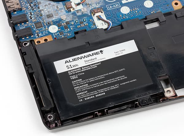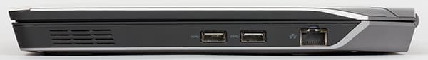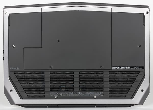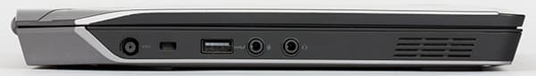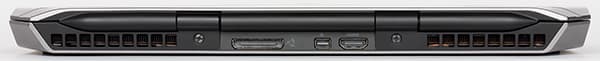 На заднем торце корпуса имеются видеоразъемы Mini-DisplayPort и HDMI, а также специальный разъем для подключения опциональной док-станции Dell Alienware Graphics Amplifier. Данная док-станция предназначена для установки десктопной видеокарты и оснащена своим собственным блоком питания. В дополнение к видеокарте эта док-станция имеет также хаб на четыре порта USB 3.0.