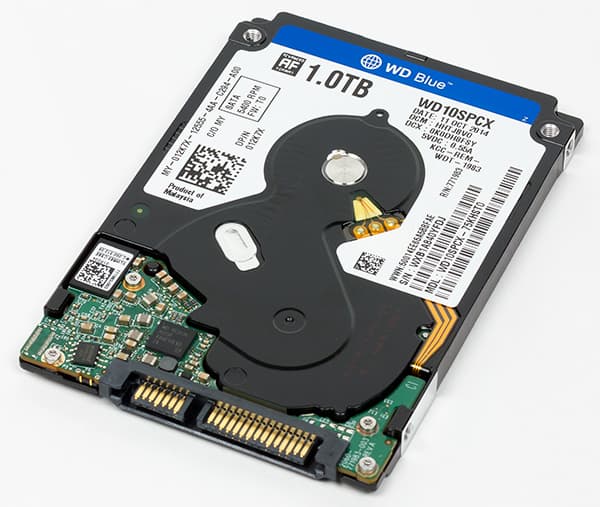 Подсистема хранения данных ноутбука представляет собой один HDD WDC WD10SPCX-75KHST0 емкостью 1 ТБ. Этот накопитель имеет интерфейс SATA600.