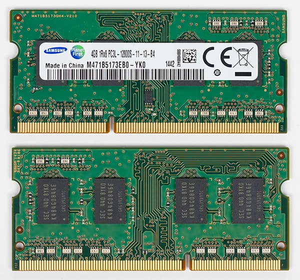 Ноутбук Alienware 13 (A13-4316) комплектуется 8 ГБ памяти DDR3-1600. Для установки модулей памяти предусмотрено два слота, и в нашем варианте в ноутбуке было установлено два модуля памяти Samsung M471B5173EB0-YK0.
