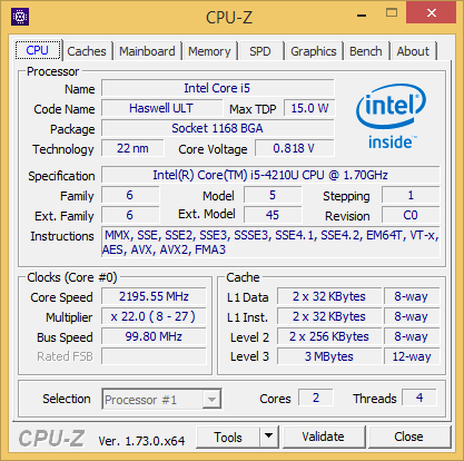| Процессор | Intel Core i5-4210U (Haswell) | |
