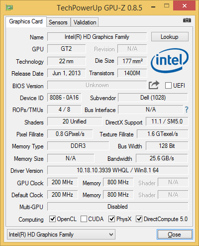 Итак, основой нашего ноутбука Alienware 13 (A13-4316) является двухъядерный процессор Intel Core i5-4210U. Этот процессор имеет номинальную тактовую частоту 1,7 ГГц, которая в режиме Turbo Boost может повышаться до 2,7 ГГц. Размер его кэша L3 составляет 3 МБ, а расчетная максимальная мощность — 15 Вт.