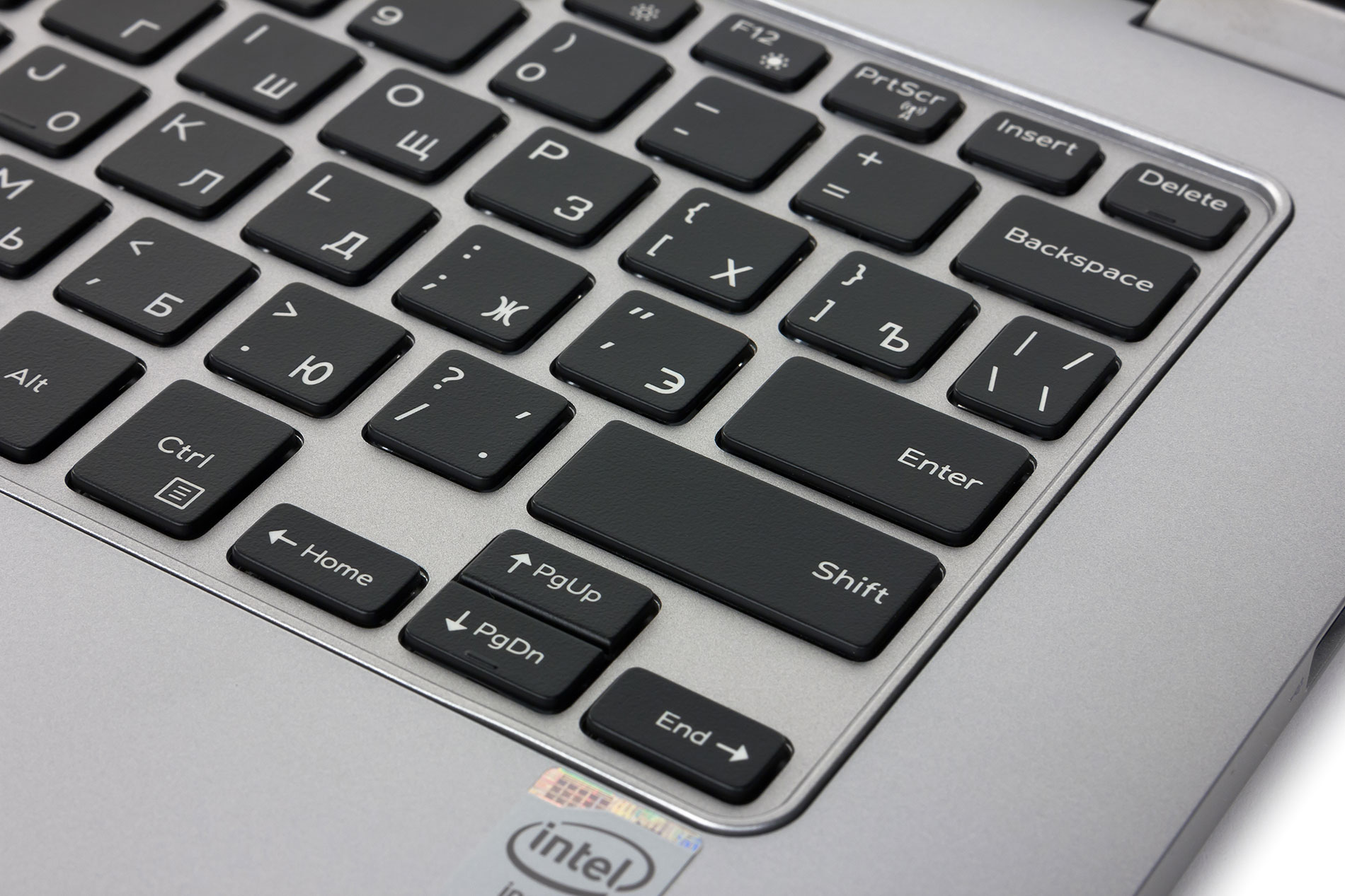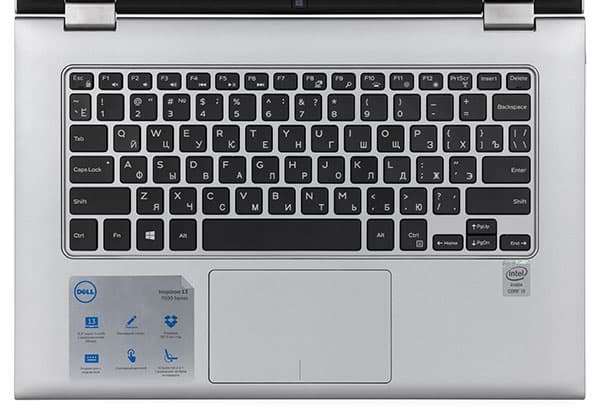 В ноутбуке Dell Inspiron 13 7347 используется клавиатура островного типа с увеличенным расстоянием между клавишами. Клавиатура имеет двухступенчатую подсветку. Клавиши на клавиатуре черные, а их размер составляет 15×15 мм. Зазор между клавишами 3 мм. Основание под клавиатурой немного утоплено относительно рабочей поверхности, в результате чего поверхность самих клавиш и рабочая поверхность находятся в одной плоскости.