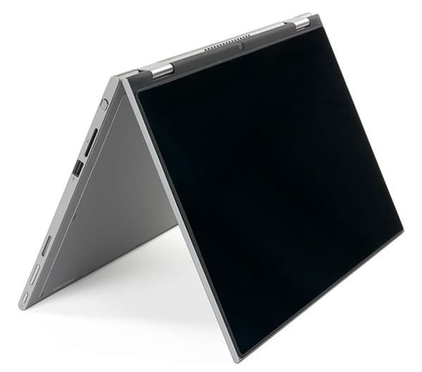 Система крепления экрана ноутбука к корпусу представляет собой две шарнирных петли, расположенных в нижней части экрана. Такая система крепления позволяет отклонять сам экран относительно плоскости клавиатуры на угол в 360°, переводя его в режим планшета. Причем когда угол между плоскостью клавиатуры и экраном превышает 180°, клавиши и тачпад автоматически блокируются .