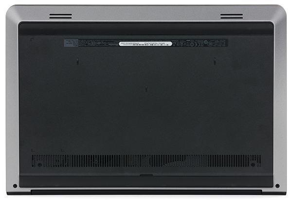 Нижняя панель корпуса сделана из черного матового пластика. Здесь расположены вентиляционные решетки и две решетки встроенных динамиков.