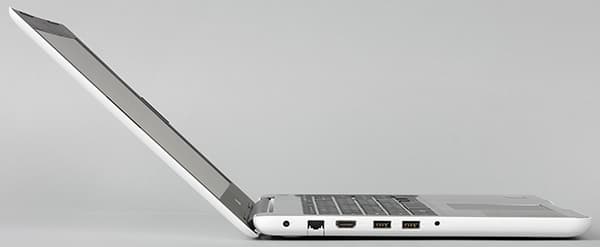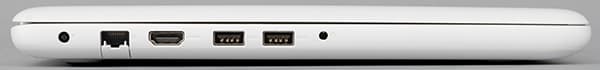 На левом торце корпуса расположены комбинированный аудиоразъема типа миниджек, разъем питания, два порта USB 3.0, видеовыход HDMI и сетевой разъем RJ-45.