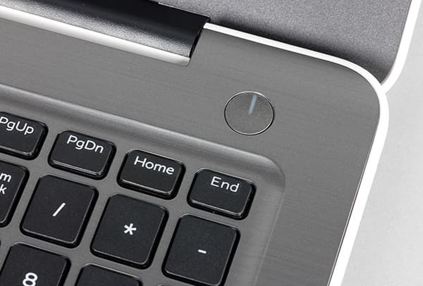 Клавиатура в этом ноутбуке черная. Но подробно о ней, как и о тачпаде, мы расскажем чуть позже. Рабочая поверхность, обрамляющая клавиатуру и тачпад, также сделана из пластика, текстурированного под шлифованный металл темно-серебристого цвета. В правом верхнем углу рабочей поверхности расположена кнопка включения питания. Более в ноутбуке никак кнопок не предусмотрено.