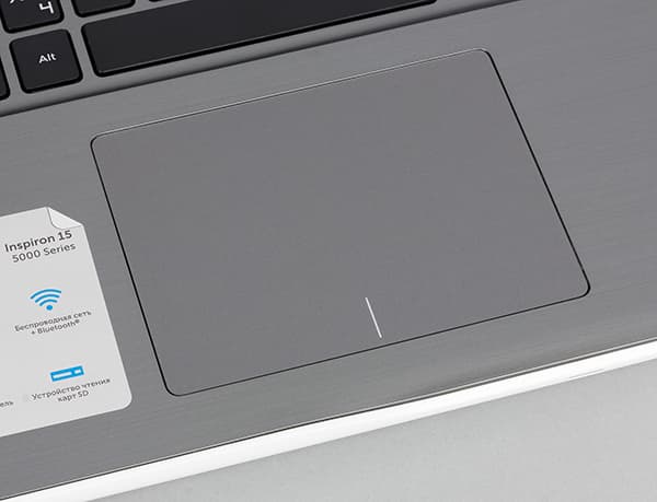 В ноутбуке Dell Inspiron 15 5567 используется не классический тачпад, а кликпад. Его размеры составляют 106×81 мм. Сенсорная поверхность тачпада немного заглублена. Глубина нажатия составляет 1 мм.