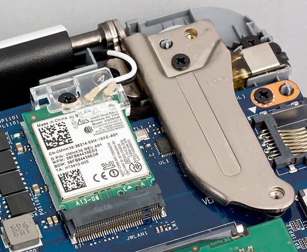 Коммуникационные возможности ноутбука определяются наличием беспроводного сетевого адаптера Intel Dual Band Wireless-AC 3165. Этот одноантенный модуль (максимальная скорость до 433 Мбит/с) поддерживает частотные диапазоны 2,4 и 5 ГГц, соответствует спецификациям IEEE 802.11b/g/n/ac, а также поддерживает Bluetooth 4.2.