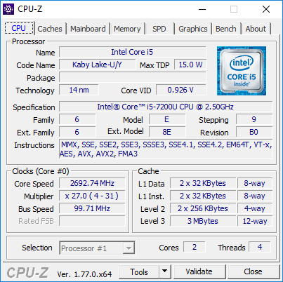 | Процессор | Intel Core i5-7200U | |