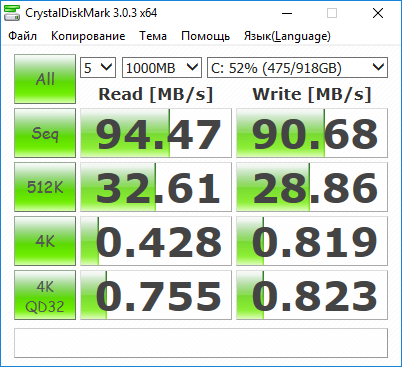 Утилита CrystalDiskMark демонстрирует аналогичный результат.