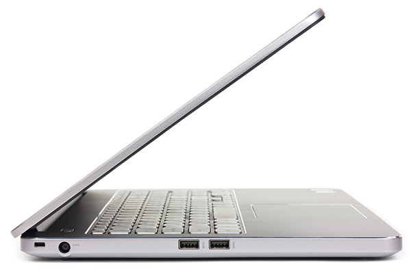 На левом торце корпуса ноутбука расположены два порта USB 3.0, разъем питания и разъем кенсингтонского замка.