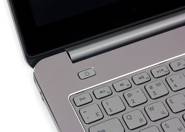 Над клавиатурой расположены в левом верхнем углу расположена всего одна кнопка кнопка включения/выключения питания.