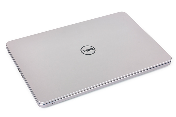 Начнем с того, что корпус этого ноутбука почти полностью выполнен из металла. Если говорить точнее, то из пластика сделана только нижняя панель корпуса, а вот рабочая поверхность, боковые грани и крышка сделаны из металла, окрашенного в серебристый, матовый цвет. Важно, что отпечатки пальцев на этой поверхности не остаются вообще, так что заляпанной крышка этого ноутбука и рабочая поверхность выглядеть не будет. В центре крышки имеется крупный логотип компании Dell. Нужно отметить, что крышка ноутбука очень жесткая и не прогибается при нажатии на нее.