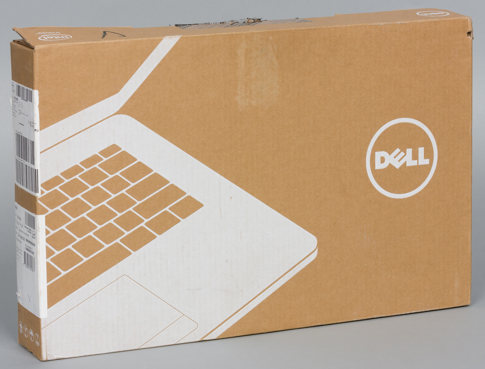 Как и все ноутбуки Dell, модель Dell Inspiron 15 7559 поставляется в невзрачной картонной коробке. Комплект поставки минимальный: адаптер питания мощностью 130 Вт (19,5 В; 6,7 А) и очень краткое описание ноутбука. Более ничего в комплект поставки не входит.