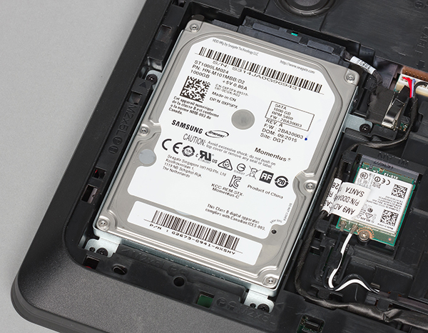 Что касается подсистемы хранения данных, то тут возможны варианты. В нашем случае, установлен SSD-накопитель SSD SK Hynix SC300 емкостью 128 ГБ с разъемом M.2 и интерфейсом SATA 6 Гбит/с и 2,5-дюймовый HDD ST1000LM024 HN-M101MBB емкостью 1 ТБ и интерфейсом SATA 6 Гбит/с.