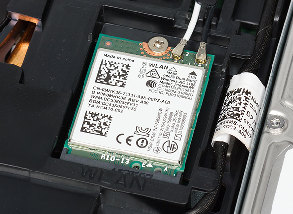 Коммуникационные возможности ноутбука определяются наличием сетевого адаптера Intel Dual Band Wireless-AC 3165 (802.11a/b/g/n/ac). Этот модуль поддерживает частотные диапазоны 2,4 и 5 ГГц, соответствует спецификациям IEEE 802.11a/b/g/n/ac и имеет встроенный модуль Bluetooth 4.2. Максимальная скорость передачи данных по протоколу 802.11aс составляет 433 Мбит/с.