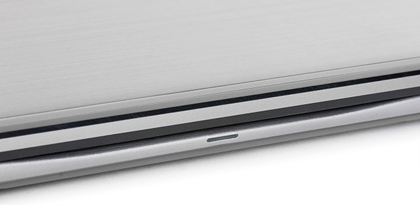 Светодиодный индикатор в этом ноутбуке только один. Он расположен по центру на переднем торце корпуса и загорается при зарядке батареи.