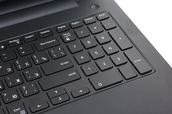 В ноутбуке Dell Inspiron 3541 используется клавиатура островного типа с увеличенным расстоянием между клавишами. Имеется и отдельный цифровой блок (NumPad).