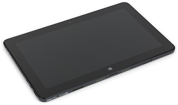 В дизайне планшета Dell Venue 11 Pro 7140 все очень стандартно. При размере 280×176×11 мм его масса составляет 727 г (на сайте указан чуть другой вес, а 727 г — это результат нашего взвешивания). Может показаться, что для планшета такая масса великовата, да и толщина в 11 мм — это не так уж мало. Однако если сравнить характеристики планшета Dell Venue 11 Pro 7140 с его конкурентами, то есть Windows-планшетами на базе процессоров семейства Intel Core, то выяснится, что он и не тяжелый (можно даже сказать, очень легкий) и не толстый.