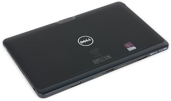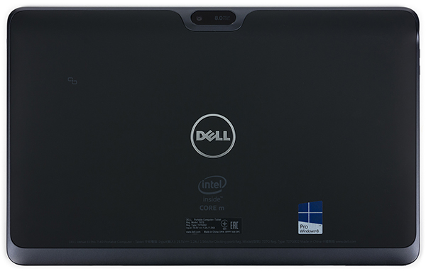 По центру сверху тыльной стороны планшета располагается камера, а в центре — логотип компании Dell.