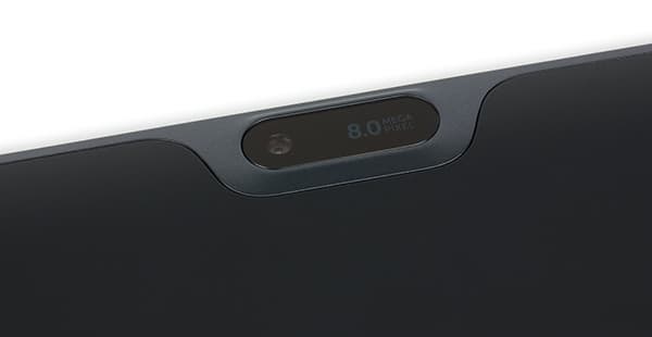 Сверху над экраном расположена фронтальная камера, а снизу — традиционная кнопка Windows.