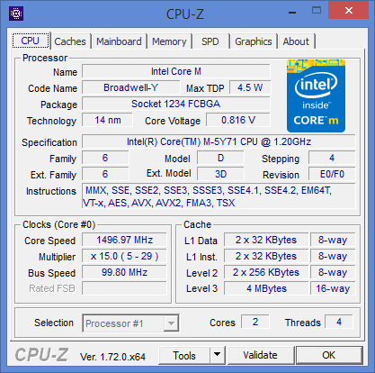| Процессор | Intel Core M-5Y71 |
