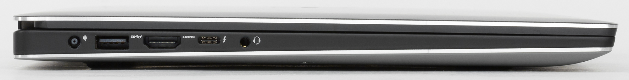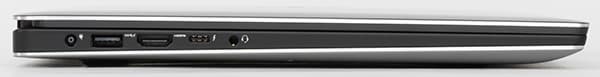 На левом торце корпуса расположен порт USB 3.0, разъем питания, видеовыход HDMI, комбинированный аудиоразъем, а также порт Thunderbolt 3.0 (Type-C).
