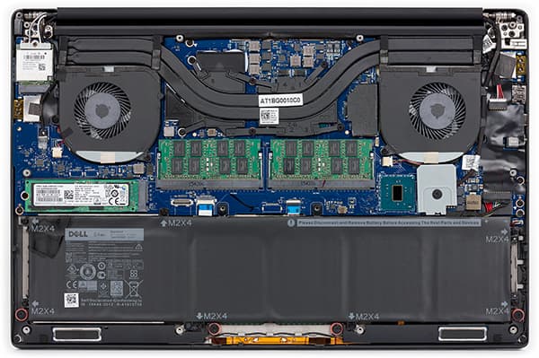 Ноутбук Dell XPS 15 9550 очень просто разобрать. Нижняя панель съемная, и сняв ее, можно получить доступ к SSD, модулям памяти, модулю Wi-Fi и системе охлаждения.