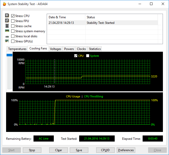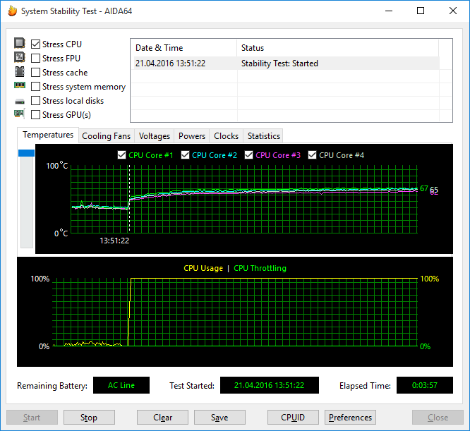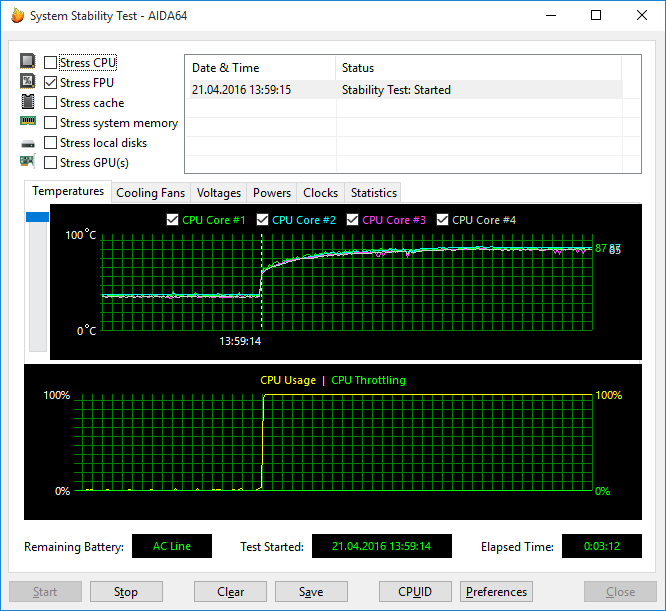 | Тест | Мощность процессора, Вт | Максимальная температура, °С | Загрузка процессора, % |