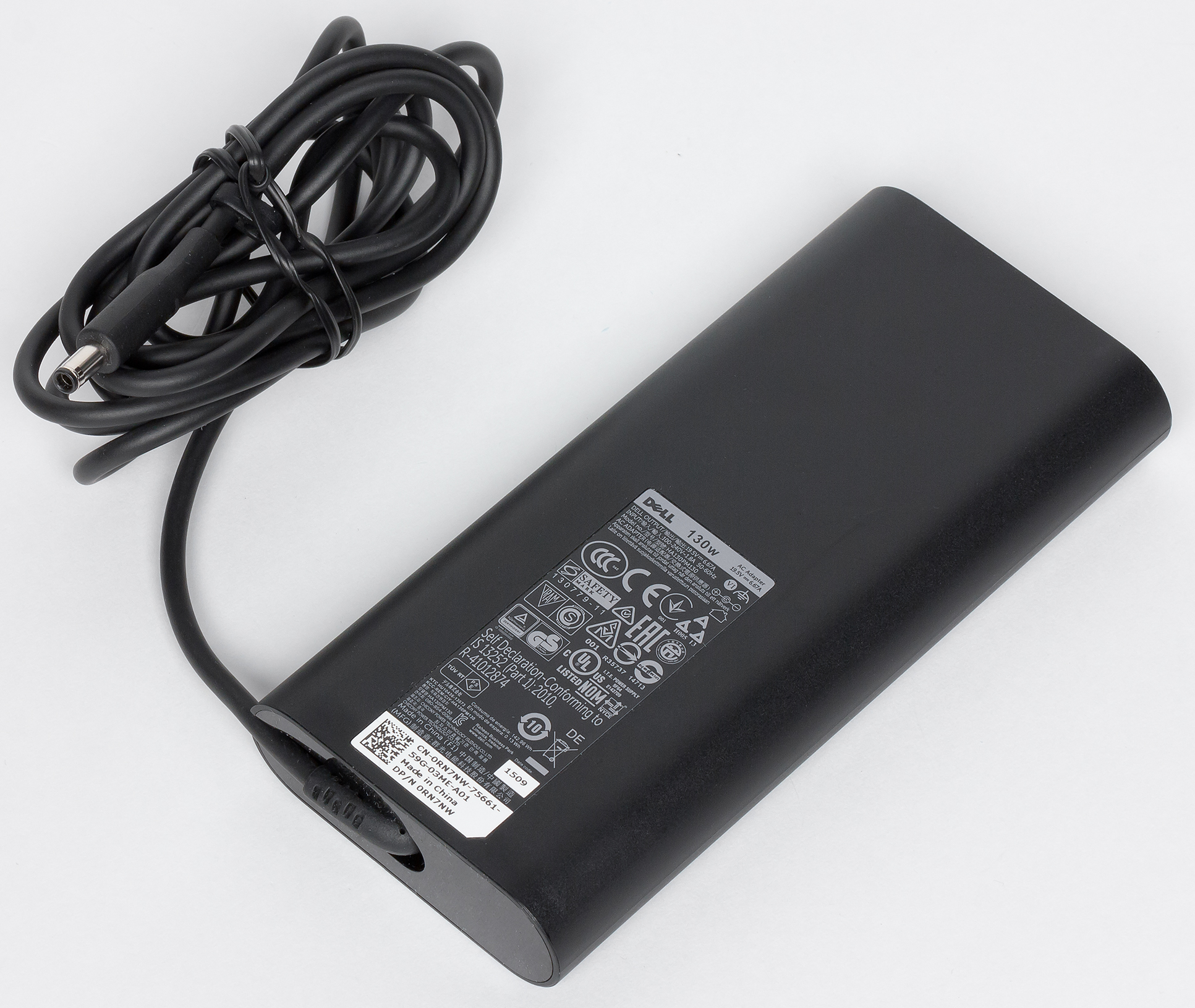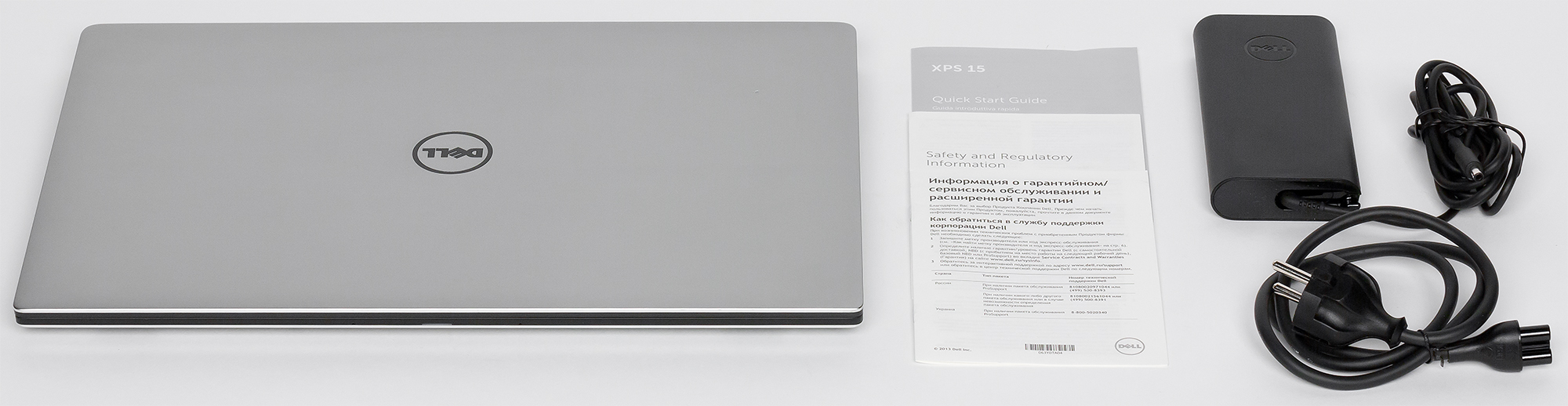 Кроме ноутбука, в комплект поставки входит адаптер питания на 130 Вт (19,5 В; 6,67 А) и краткое руководство пользователя.