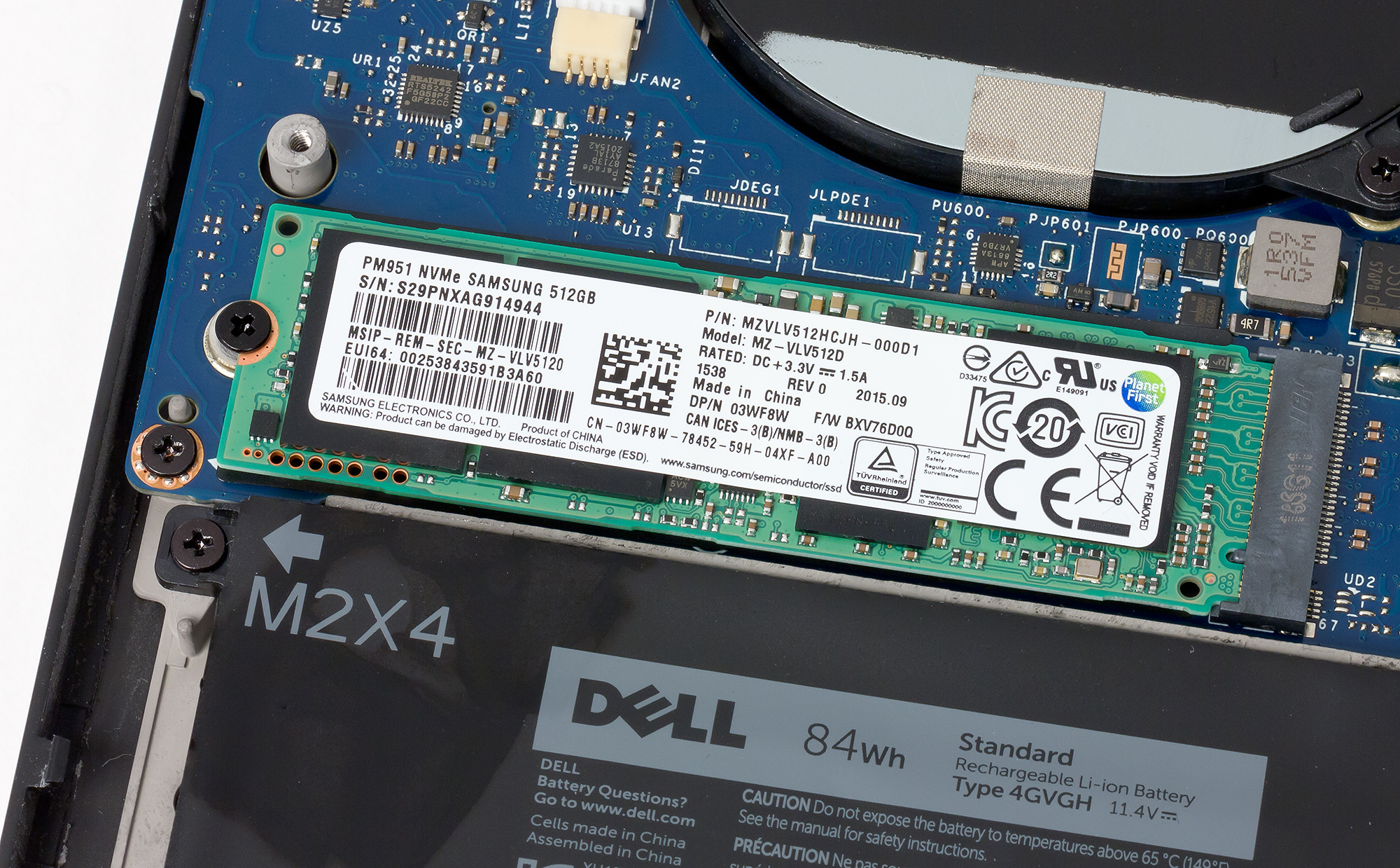 Подсистема хранения данных в ноутбуке Dell XPS 15 9550-1370 представляет собой один SSD NVMe Samsung PM951 емкостью 512 ГБ. Этот накопитель имеет разъем M.2 и интерфейс PCIe 3.0 x4.