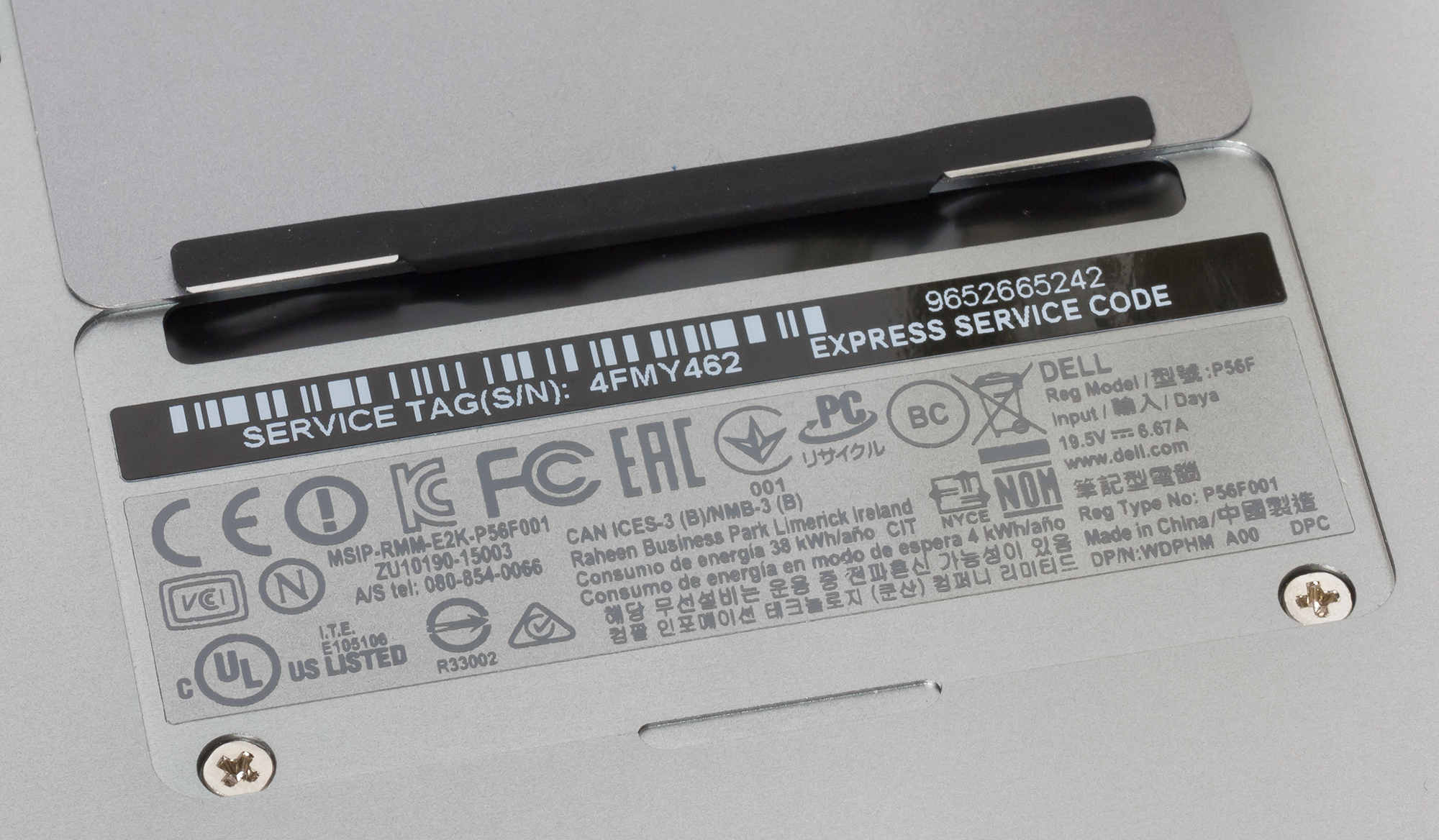 Вообще, разобраться в правилах классификации ноутбуков Dell — задача не из простых. В нашем случае речь идет о модели Dell XPS 15 9550-1370 — именно этот дополнительный номер модели определяет его конфигурацию. Впрочем, на самом ноутбуке (на тыльной стороне) такого номера нет, но указана так называемая метка обслуживания (Service Tag) 4FMY462. Ориентируясь на то, что в интернет-магазинах ноутбуки Dell классифицируют по номеру модели, мы также будем придерживаться этого правила и называть нашу модель ноутбука Dell XPS 15 9550-1370.