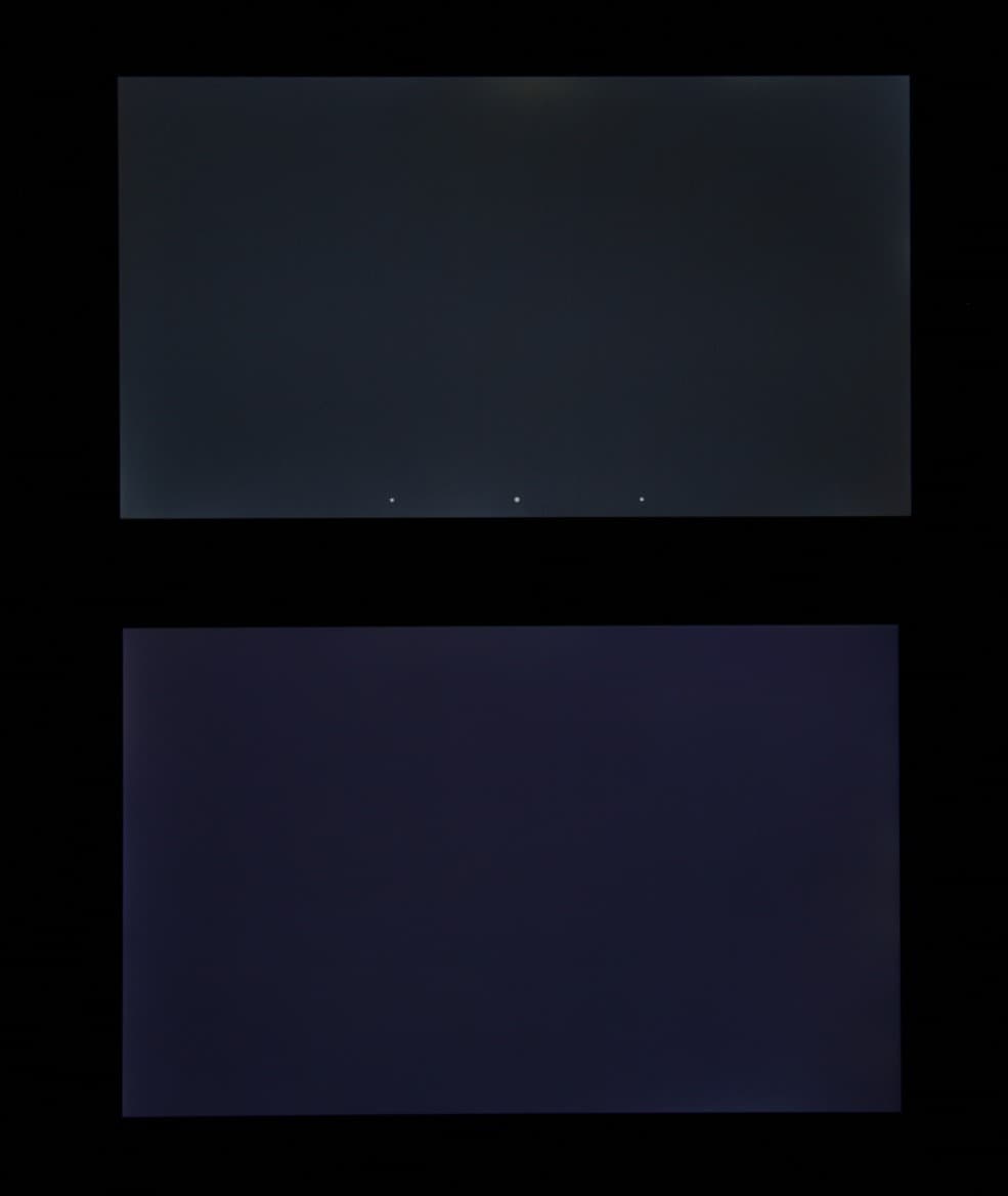 При перпендикулярном взгляде равномерность черного средняя, так как ближе к краю есть участки с немного с повышенной яркостью черного: