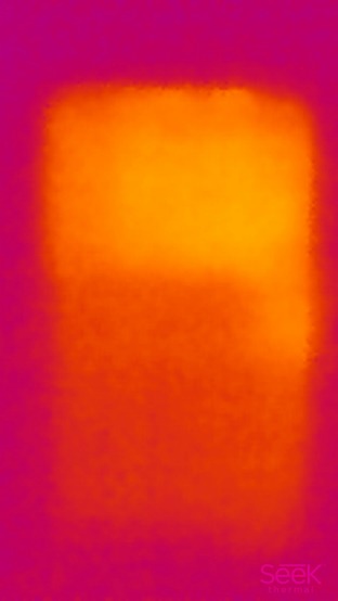Видно, что нагрев больше локализован в верхней части аппарата, что, видимо, соответствует расположению микросхемы SoC. По данным теплокамеры, максимальный нагрев составил всего 31 градус (при температуре окружающего воздуха в 24 градуса), это совсем мало.