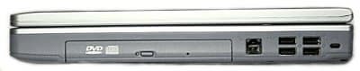 Справа — четыре порта USB 2.0 и комбо-драйв DVD-CDRW. То, что порты USB находятся на боковой грани, чрезвычайно удобно при подключении внешних устройств (например, USB-драйвов).