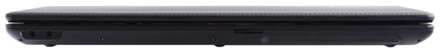 На передней панели в левом углу расположены аудиоразъемы. Более неудобного места придумать просто невозможно: вставленный штекер во время печати оказывается четко под левым запястьем и мало того, что мешает, еще и активно трется о кожу запястья, вплоть до боли. К тому же, на штекер постоянно надеваешься рукавом, в этом случае, поднимая руку, можно выломать его.