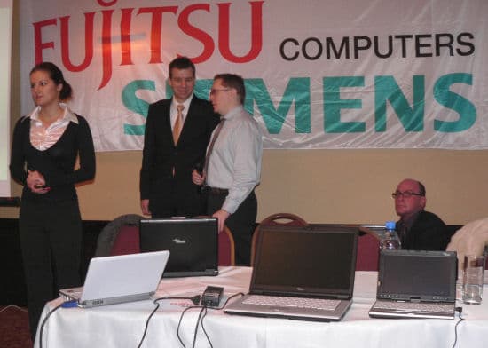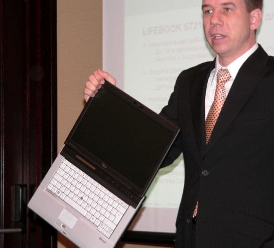 Также отвечая на очередной вопрос из зала, Берндт Клингер отметил, что в Европе практически нет спроса на устройства с диагональю экрана меньше 8 дюймов, поэтому европейское подразделение Fujitsu Siemens Computers не имеет такого предложения в продуктовой линейке, хотя у японского отделения ультрапортативная модель есть.