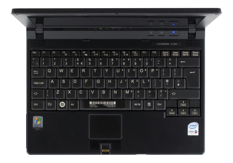 Внешний вид LIFEBOOK P7230 соответствует имиджу его производителя – стильный и надежный. Он, конечно, не такой лощеный, как Q2010, однако авторство угадывается сразу. Из общей строгой черно-серой гаммы выделяется только серебристая полоска в верхней части рамки экрана, на которой расположены камера и два микрофона.