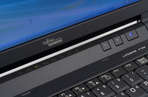 Основной блок индикаторов (жесткий диск/оптический накопитель, по два на каждую из двух батарей (состояние и зарядка), стандартные NumLock, CapsLock, ScrollLock) находится на верхней кромке специального выступа под экраном, и все индикаторы видны как в открытом, так и закрытом состоянии. Кроме того, на этой же кромке находится механический выключатель беспроводных интерфейсов, стандартные для продукции FSC кнопки включения экономичного режима (отключаются некоторые не используемые в настоящий момент устройства, есть возможность настройки) и вызова утилиты резервного копирования в режиме восстановления и кнопка включения питания с голубым индикатором.