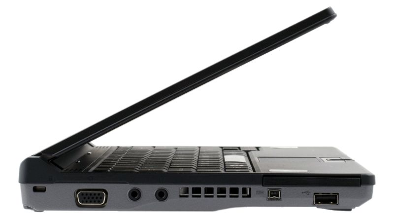 На переднем крае расположен слайдер выброса PC Card карты, вентиляционная решетка и картовод. Правая сторона занята оптическим накопителем, разъемом USB и входом для блока питания. Левая сторона – слот PC Card, под ним – четырехконтактный FireWire и USB, далее – решетка вентиляции, выход на наушники, вход для микрофона, разъем VGA для внешнего монитора. Сзади находится только разъем для подключения к локальной сети (слева от пользователя) и аккумуляторная батарея.